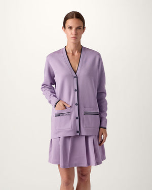 Performance elevates in this luxuriously soft v-neck cardigan crafted from effortlessly smooth, breathable Giza cotton. Its structured silhouette features our signature knit technology for natural moisture-wicking, providing all-day comfort. Detailed with color contrasts and subtle Saint-Croix-branded front patch pockets for timeless elegance.