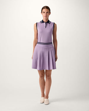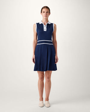 Crafted for performance, this pleated polo dress in Giza cotton blends natural breathability with essential functionality. Our signature knit technology provides flexible stretch with lasting shape retention, and our never-roll collar retains its clean line through repeated wear and care. With hand-looped waist for a seamless feel inside and a hemline just above the knee, this dress combines timeless grace...
