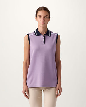 Designed for movement, this naturally soft, sleeveless Giza cotton polo blends smooth structure with effortless stretch. It features our signature moisture-wicking knit technology and side vents for additional breathability. Finished with our never-roll collar for a polished look through wear and care, and color accents on the neckline and shoulder appliqué for elevated appeal.