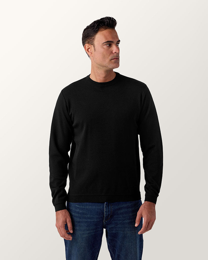 Luxuriously soft, this Merino wool crewneck sweater combines a smooth finish with lasting wear. Breathable yet substantial, it offers natural stretch and a structured drape for an elevated silhouette. Finished with a hand-looped collar, cuffs, and hem for a sleek and seamless look and feel.